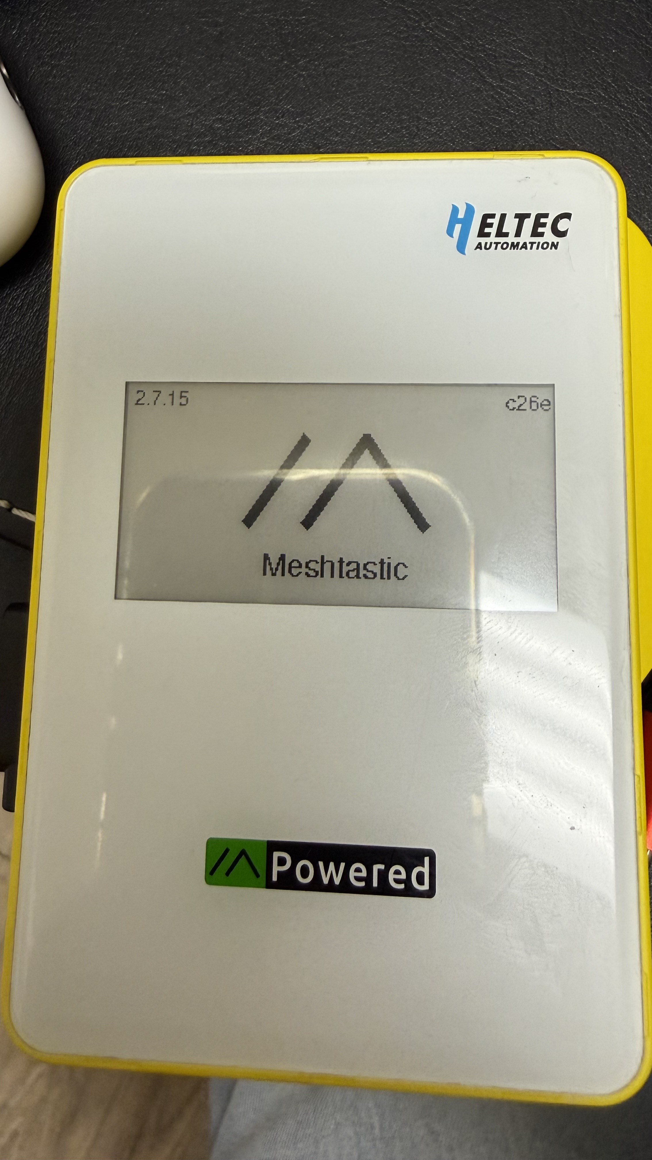 I pushed the usr button to wake it up, and the screen kind of half refreshed to the meshtastic logo (the right side of the screen showed the logo, the left side still showed the finish setup screen, and the middle was a mix of the two), and then did nothing, didn’t show up in my phone as an available device. After waiting a couple of minutes I pushed the rst button and it got to the full meshtastic logo screen, but got no further.